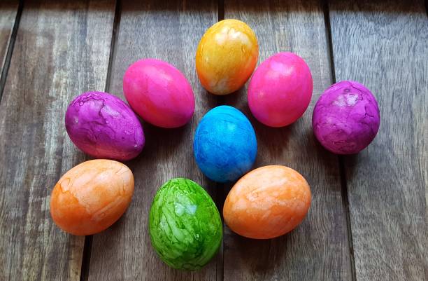 Vier pasen met gekleurde eieren